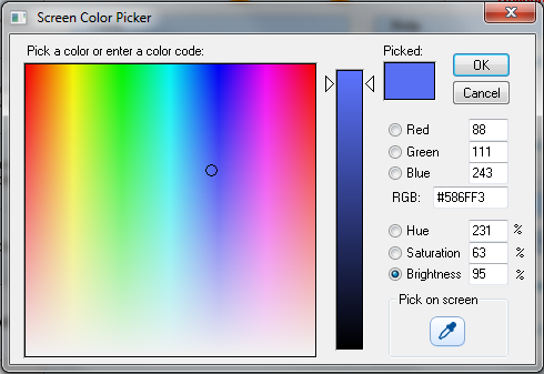 this button down and drag the mouse to pick a color anywhere on the screen.
